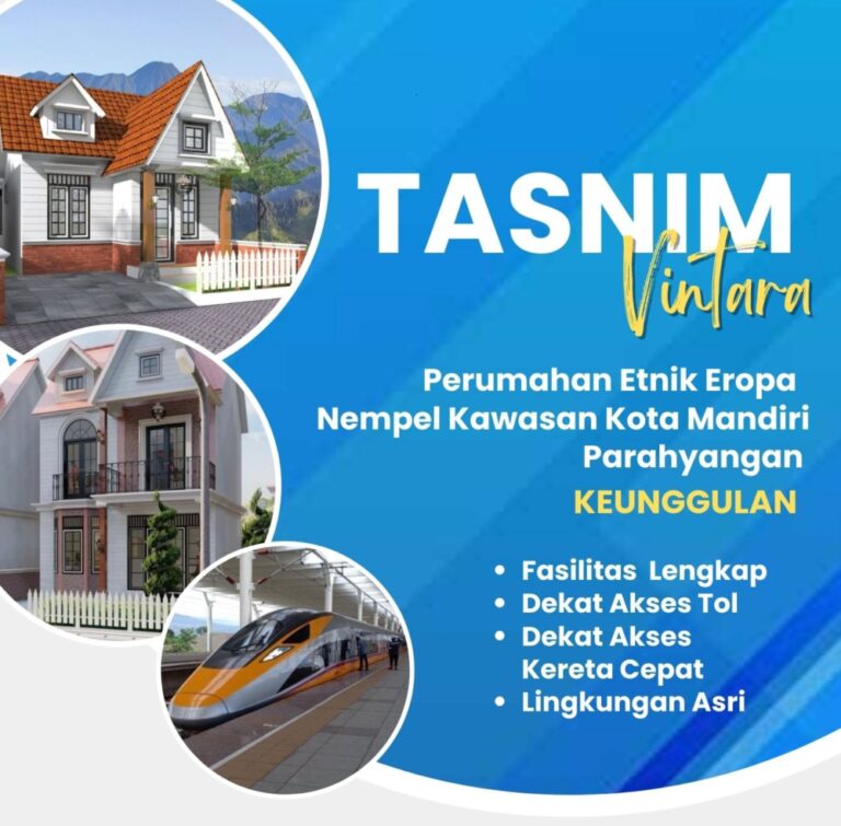 Setelah sukses pembangunan 15 Cluster Rumah Etnik di Kawasan Agrowisata Bogor, Tasnim Group kembali membuka project baru di dekat Kawasan Elit Kota Baru Parahyangan, Bandung. Project seluas 5ha ini berada di lokasi yang sangat strategis dan dirancang dengan perpaduan desain etnik Vintage Eropa dan Nusantara.